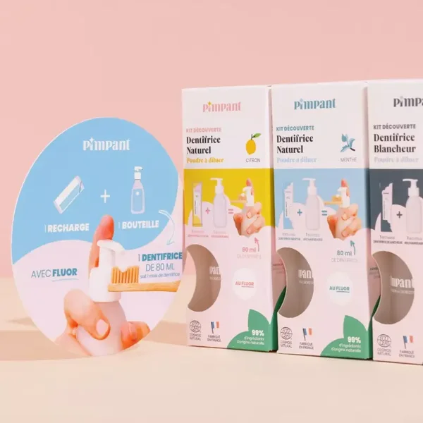 Voici le pack découverte du dentifrice menthe PIMPANT :