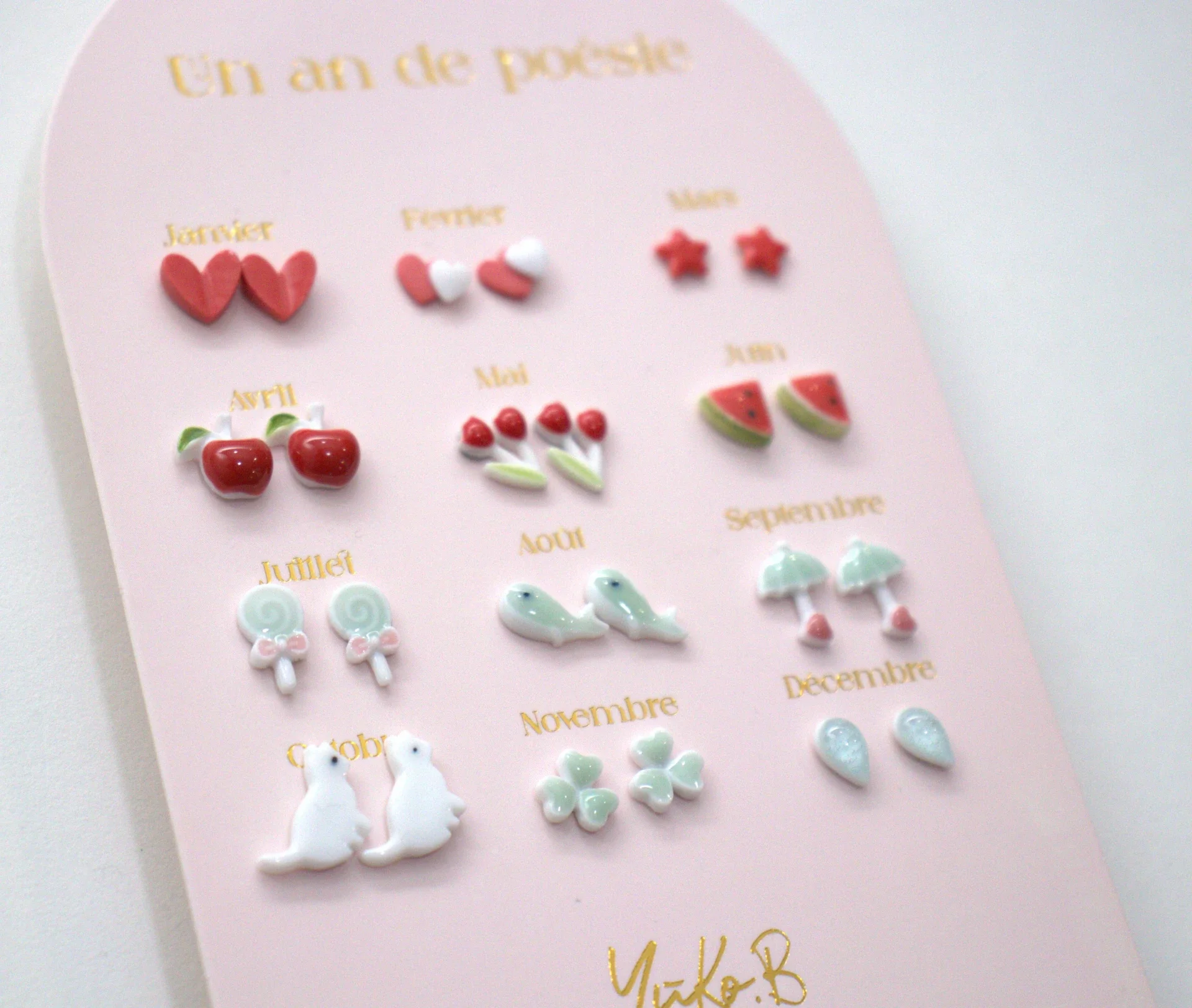 Ensemble de 12 paires de boucles d'oreilles en céramique Sans Nickel - Un An de Poésie rouge
