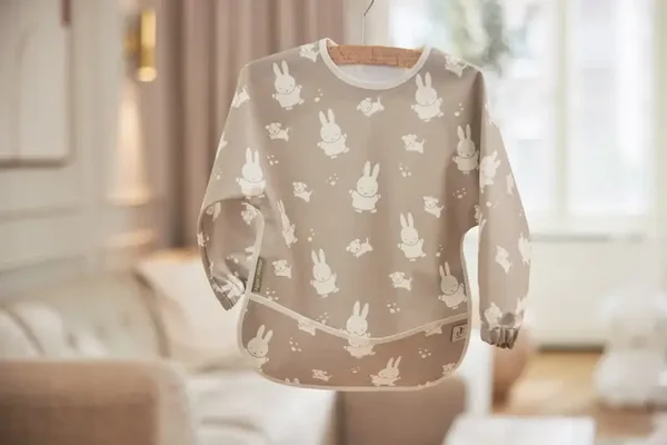 Un bavoir est toujours bien utile ! Dès que votre enfant commence à manger son premier goûter et jusqu'à l'âge de 3 ans, un bavoir vous sera très utile. En effet, manger n'est pas toujours un jeu d'enfant. Un bavoir protège les jolis vêtements de votre enfant, de sorte qu'il soit parfaitement propre après avoir mangé. Ce bavoir n'est pas seulement utile pour manger. En effet, grâce à ses manches, vous pouvez aussi l'utiliser pour peindre et bricoler avec votre enfant. Ce joli bavoir imprimé avec Miffy et Snuffy est disponible en vert olive et en nougat. Ce bavoir imperméable est conçu pour manger en toute liberté ! Imperméable et à manches longues, ce bavoir est doté d'une fermeture velcro pratique au niveau du cou.