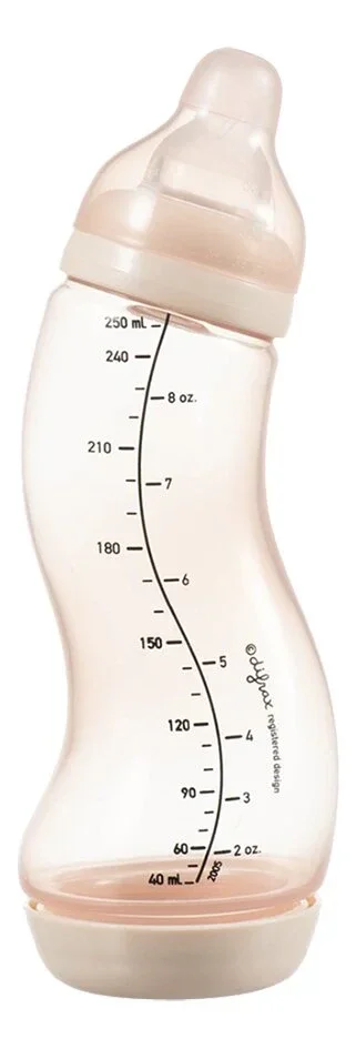 Sa forme en S et sa valve anti-coliques font en sorte que la tétine soit constamment remplie de lait et pas d'air. Cela diminue les risques de crampes, de renvois, de mal aux oreilles...