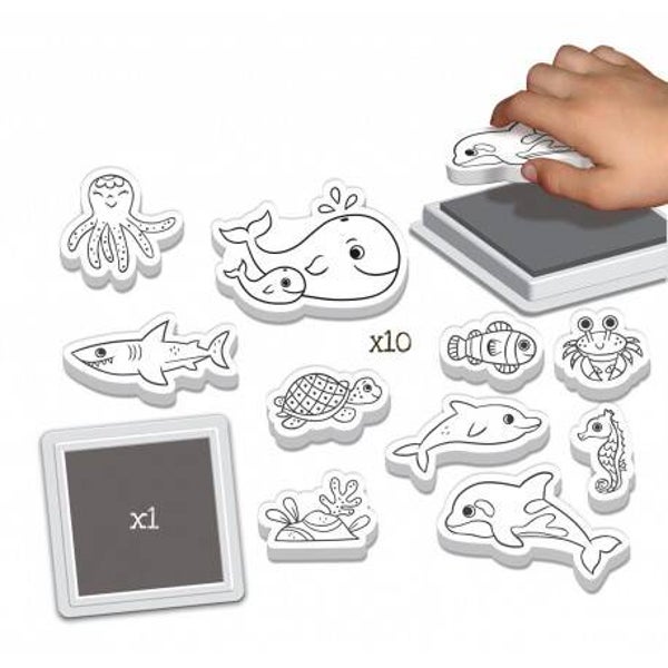 Des personnages à tamponner afin de créer son propre océan et pour réaliser ses plus beaux dessins !