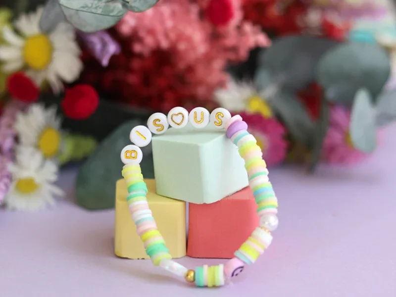 Perles lettres "Bisous" pour bracelet à personnaliser
